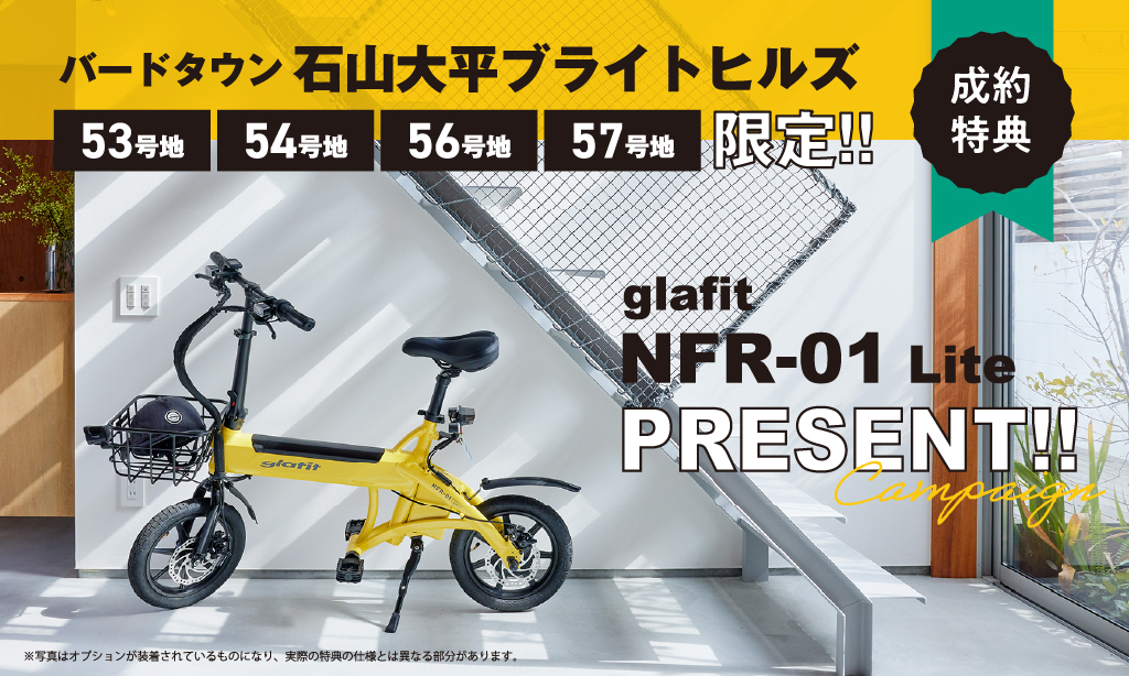 更に、大平BH53号地、54号地、56号地、57号地の4棟限定、ご成約で電動サイクルをプレゼント!!