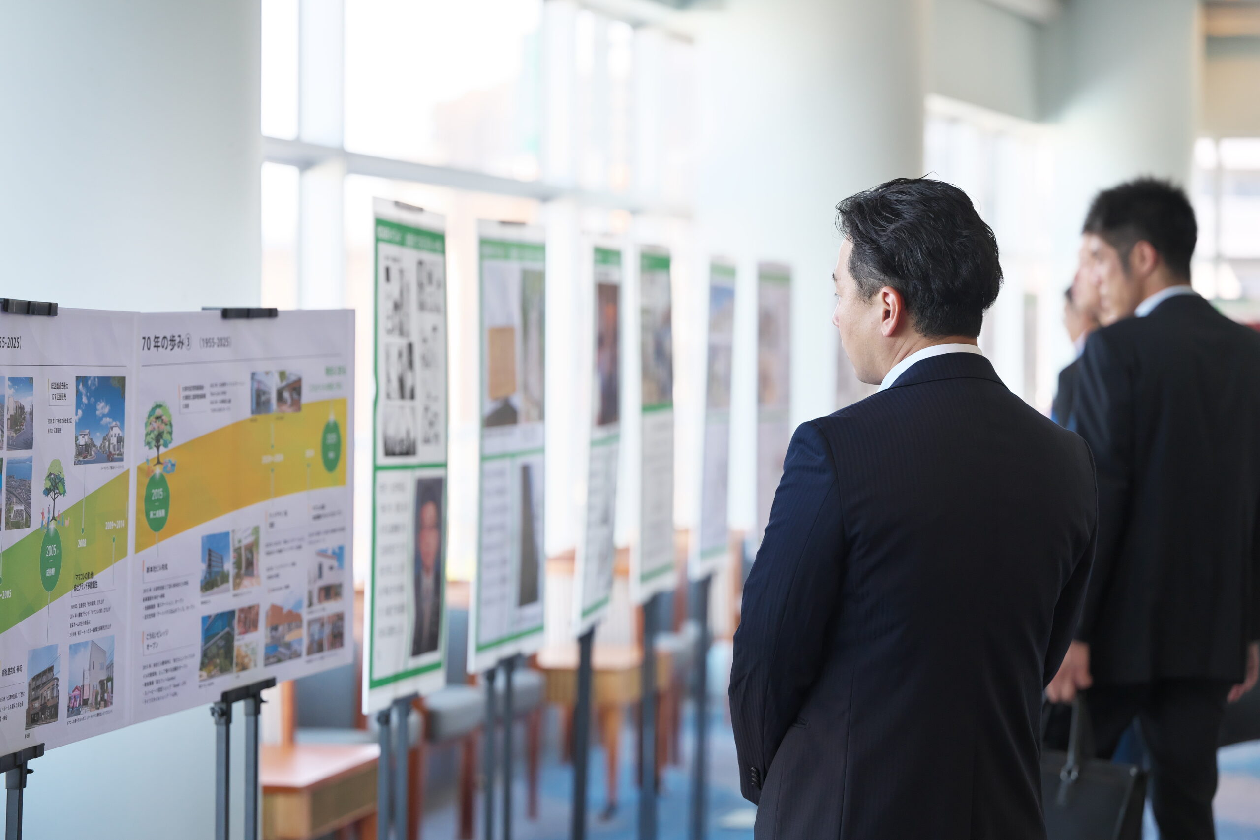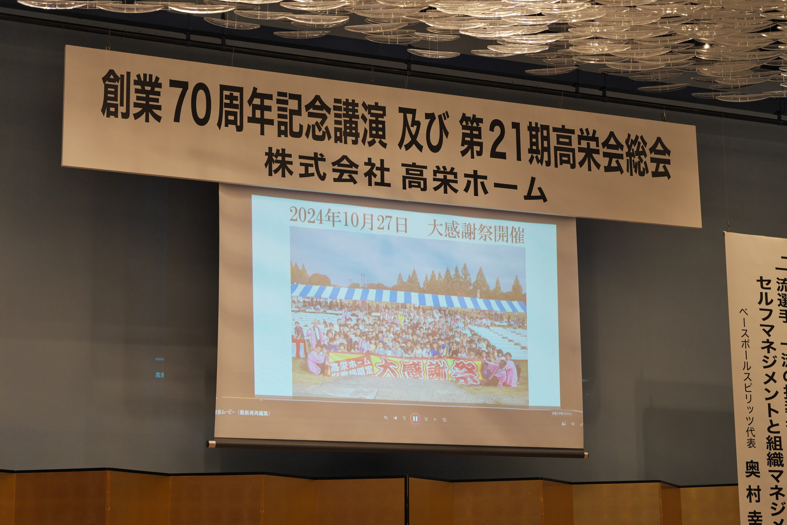 2025年9月6日に「高栄会総会及び創業70周年記念式典」を開催いたしました。創業70周年記念式典ということで、これまでの高栄ホームの歴史をパネルにして展示いたしました。
