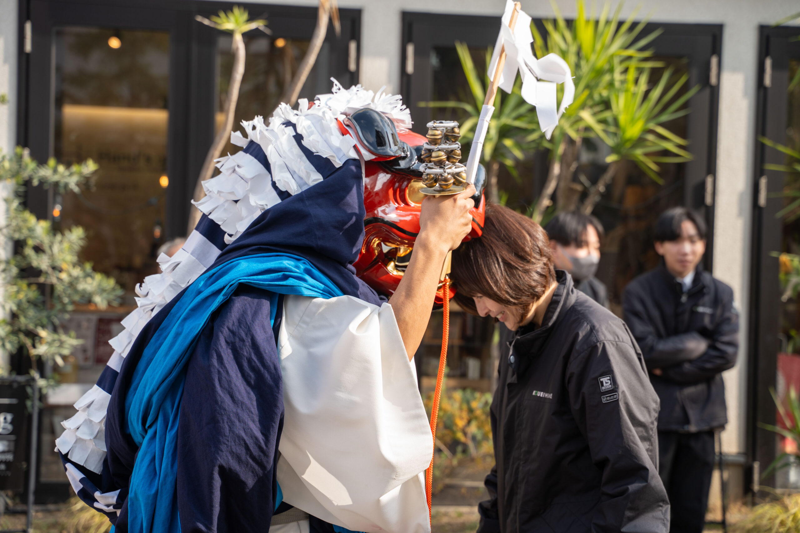 その後、本社にて獅子舞神楽を拝見し、社員一人ひとりが頭を噛んでもらいました。